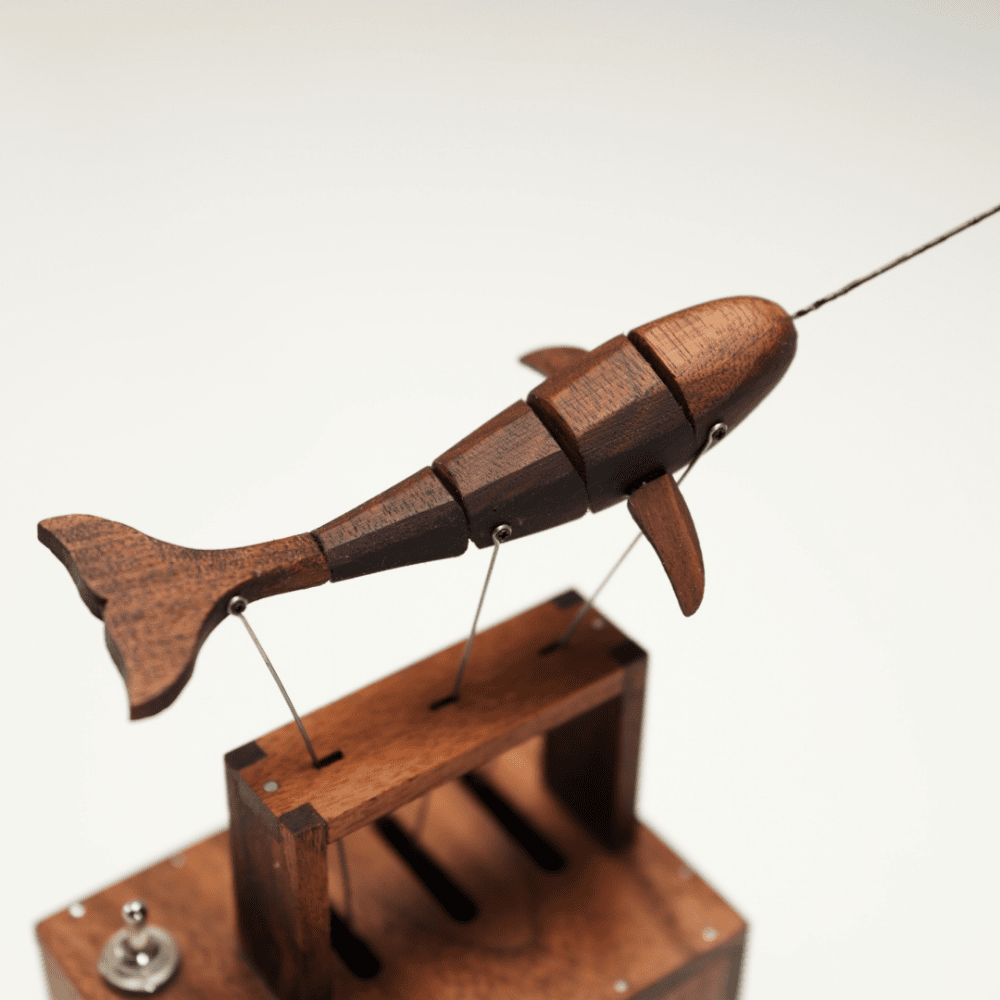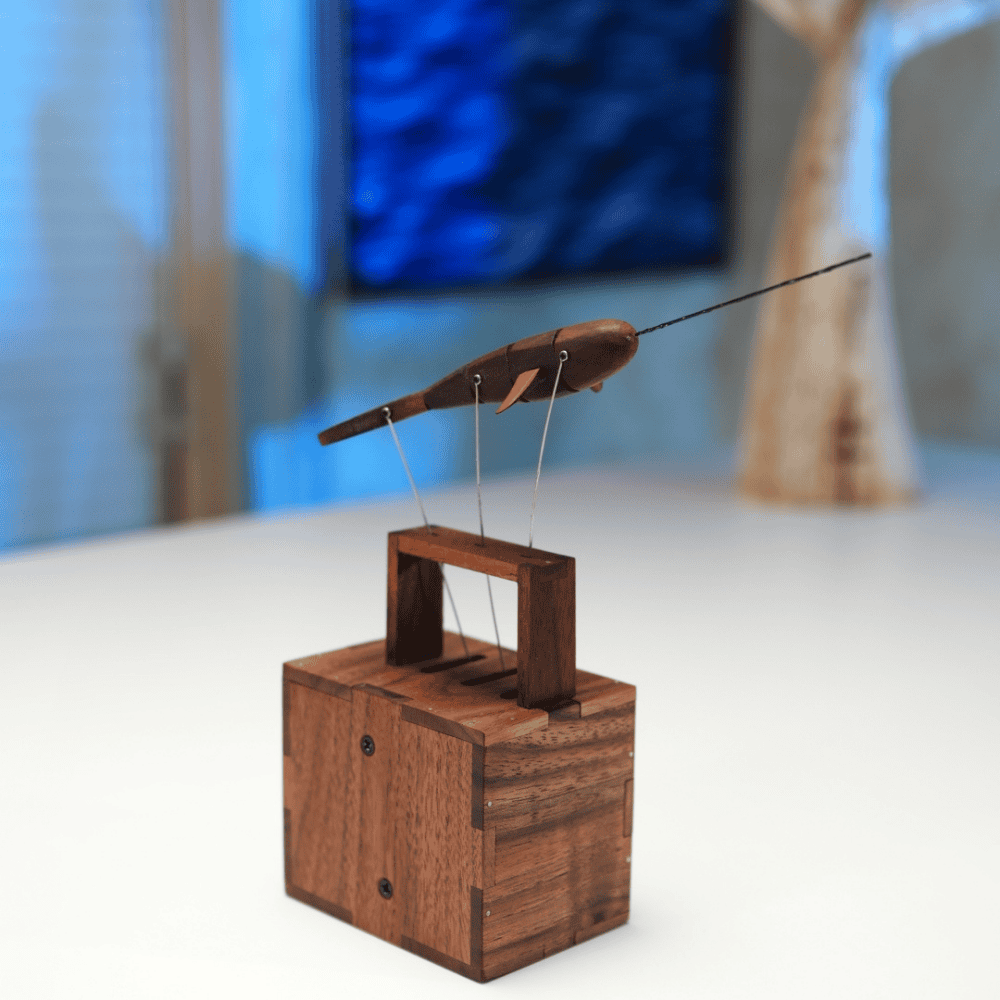 Lleva el ritmo de las profundidades marinas a tu espacio. Nuestra ballena de nogal, impulsada por un motor silencioso y engranajes interconectados, sube y baja con un movimiento lento y rítmico, transformando el ruido mental en una cadencia constante y respiratoria.