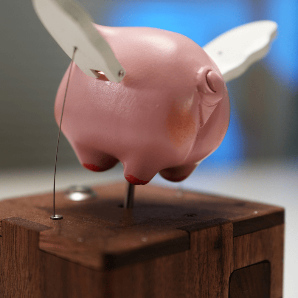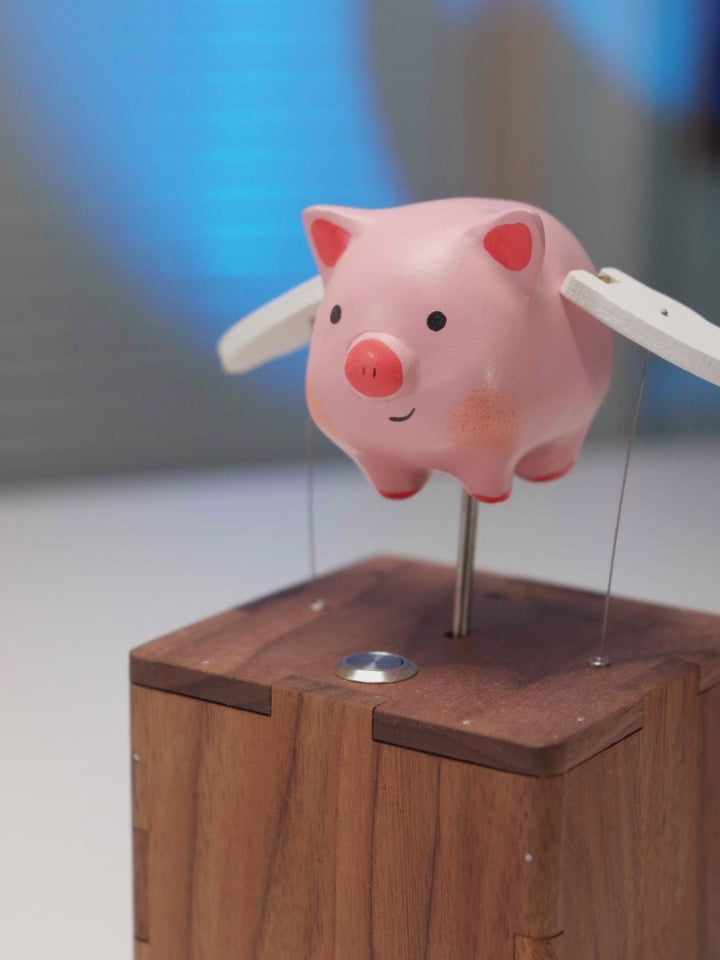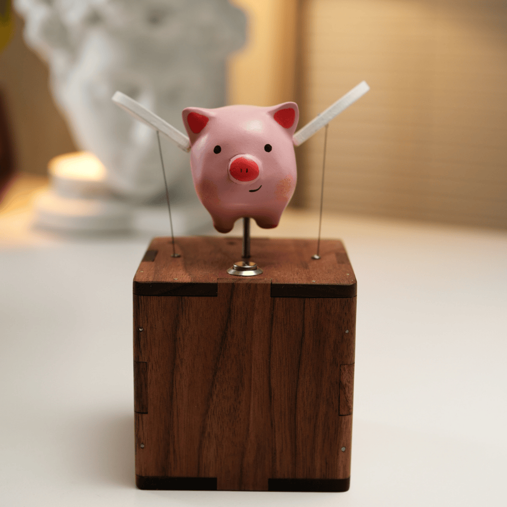 MarinerPoet™ Autómata de cerdo ángel de madera hecho a mano